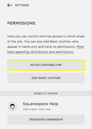 The Permissions section also allows you to remove contributors and transfer website ownership if needed.